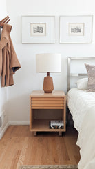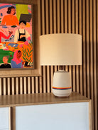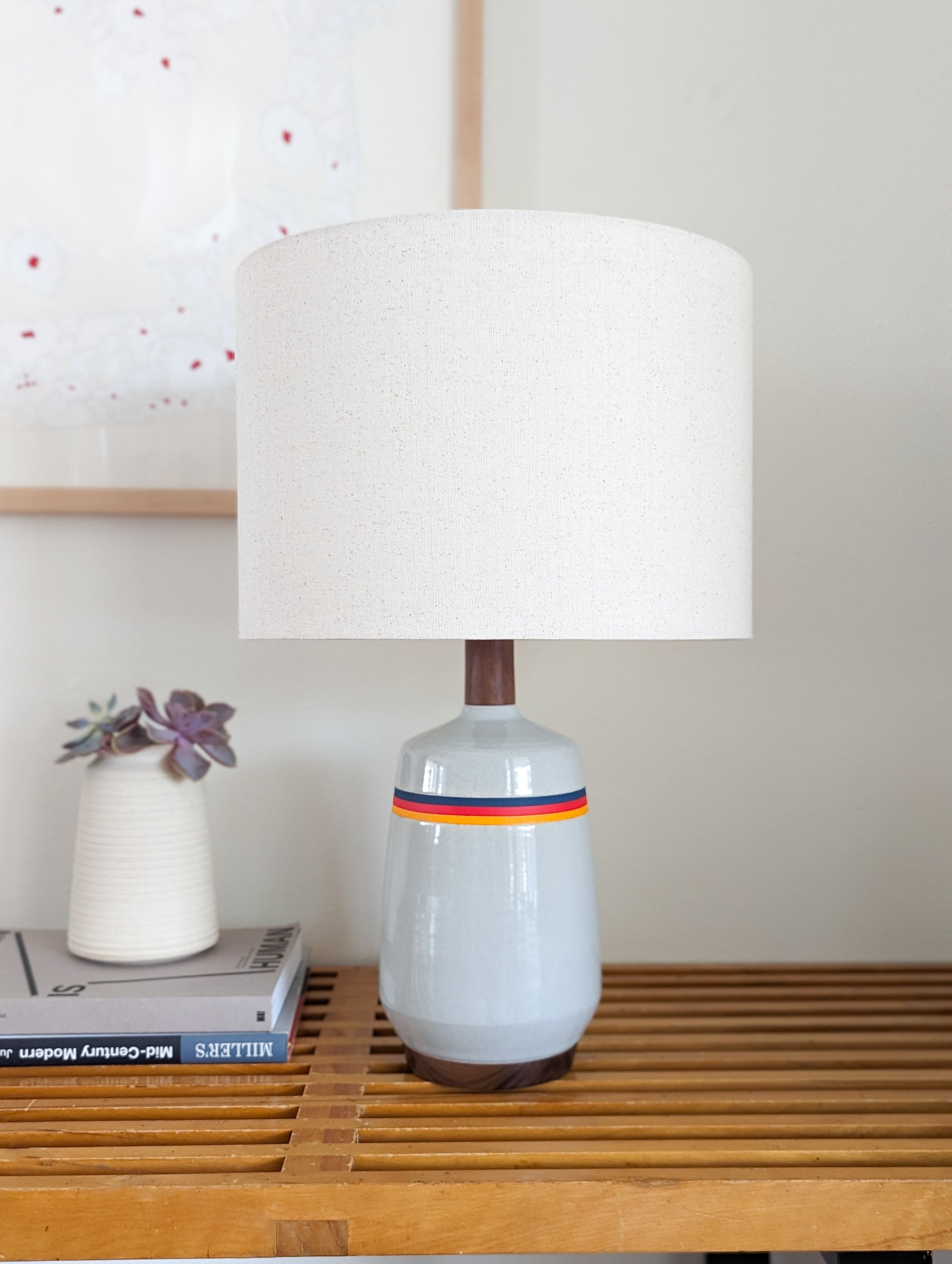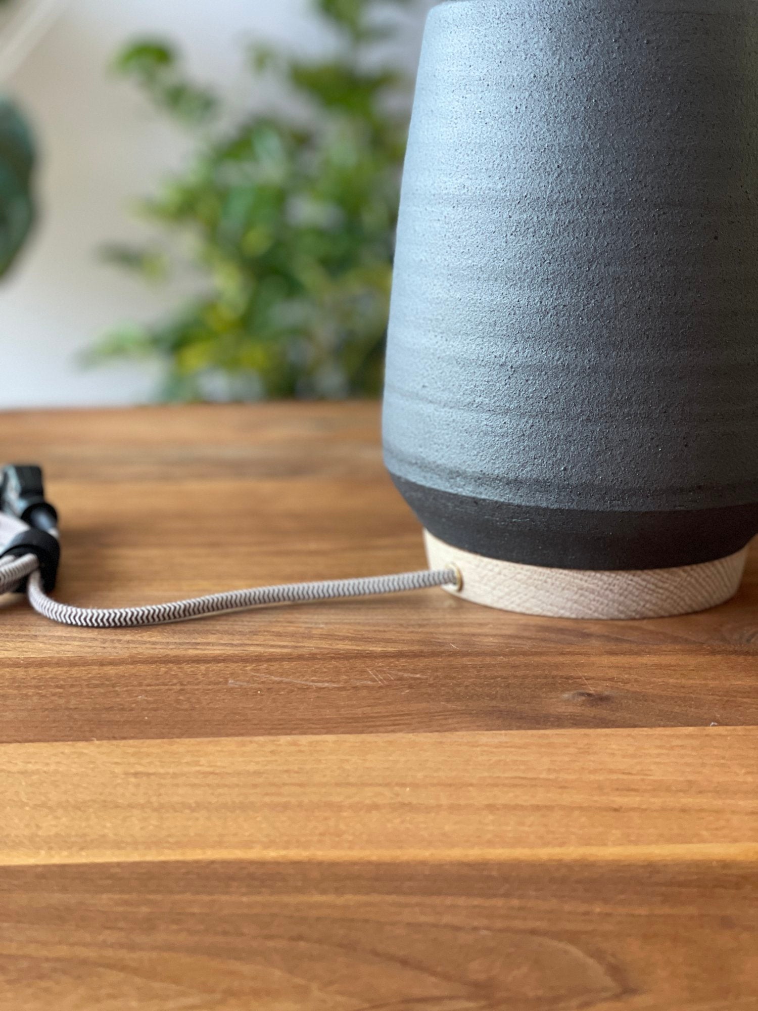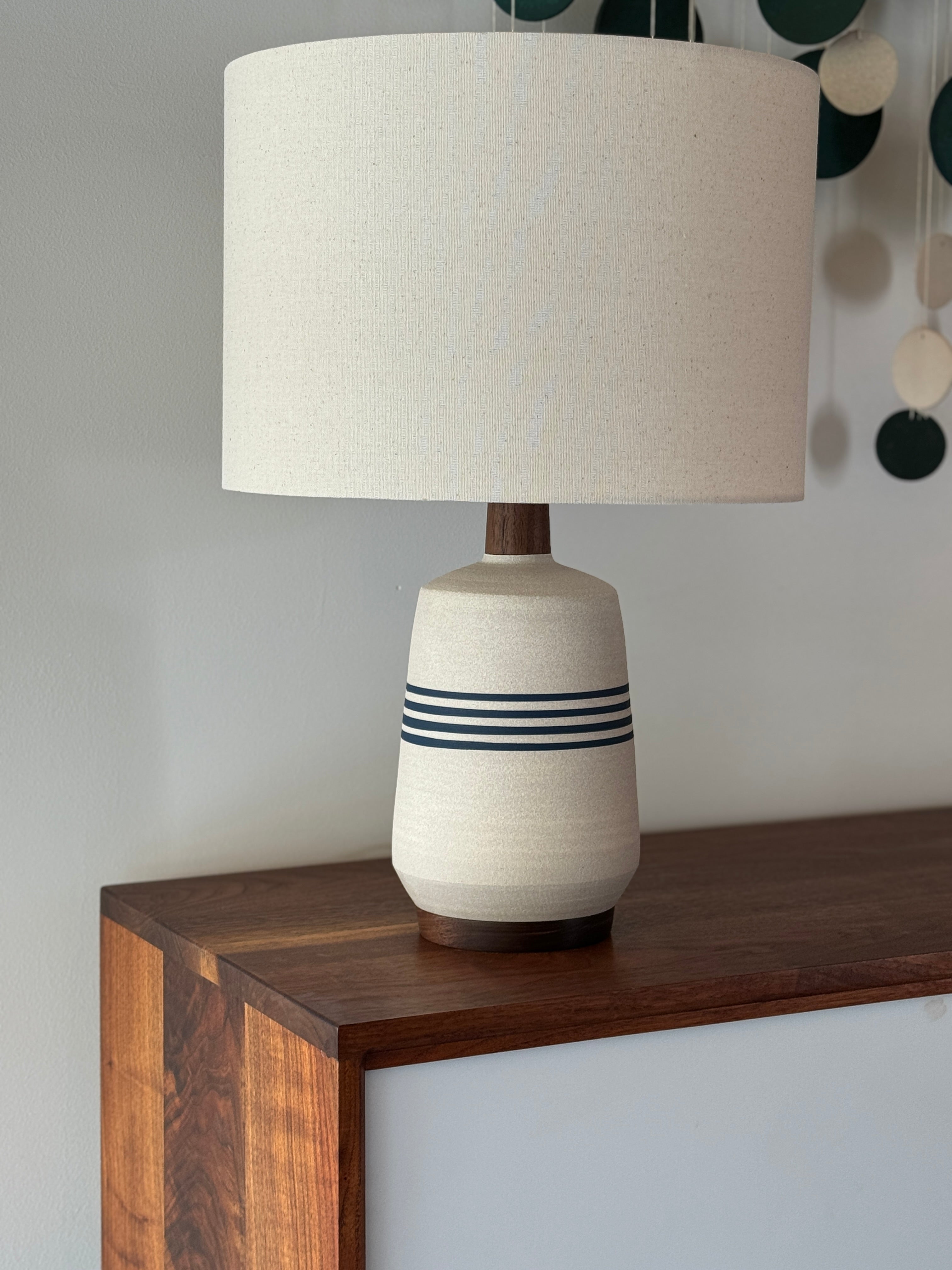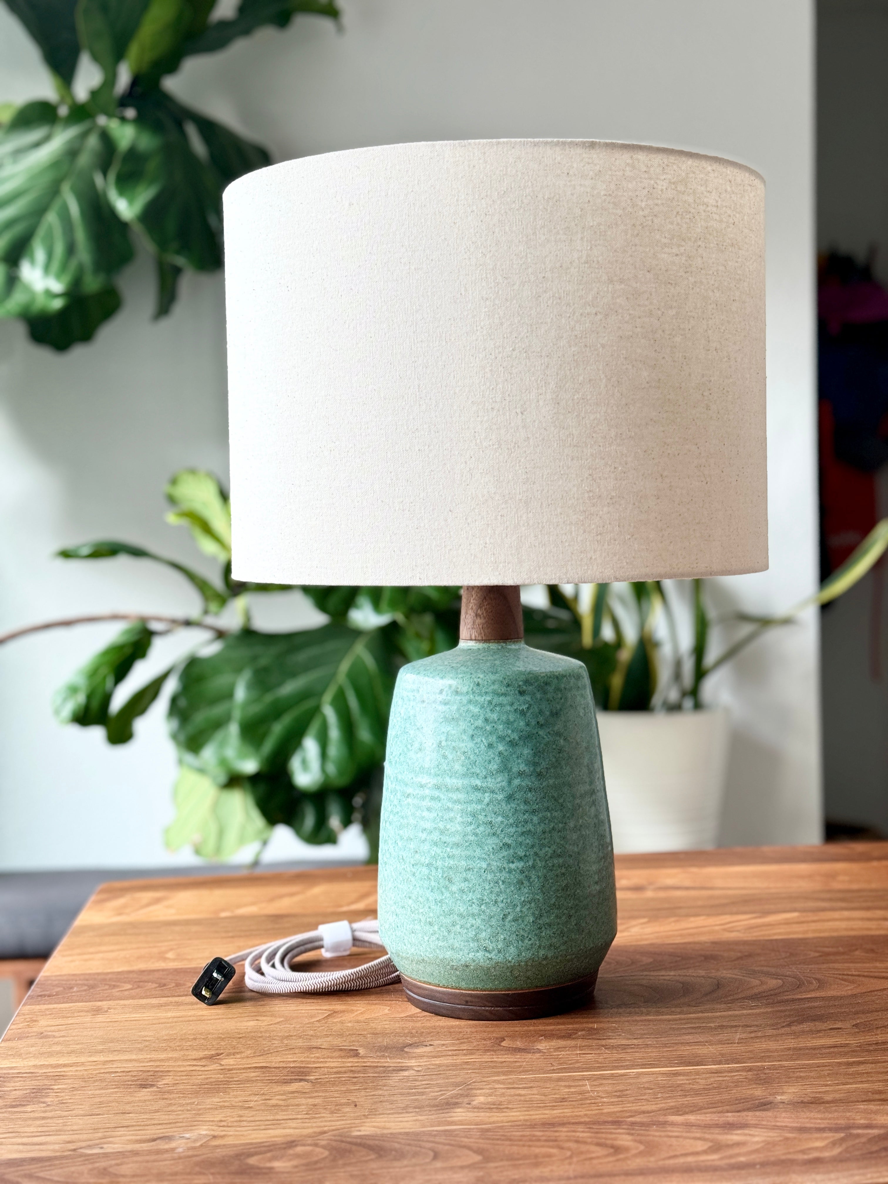 The perfect mid-size lamp for a modern home, this sculptural lamp is the finishing touch to a space. Our largest lamp offering in terms of glaze options. Look through the variations and find the perfect one for your home.