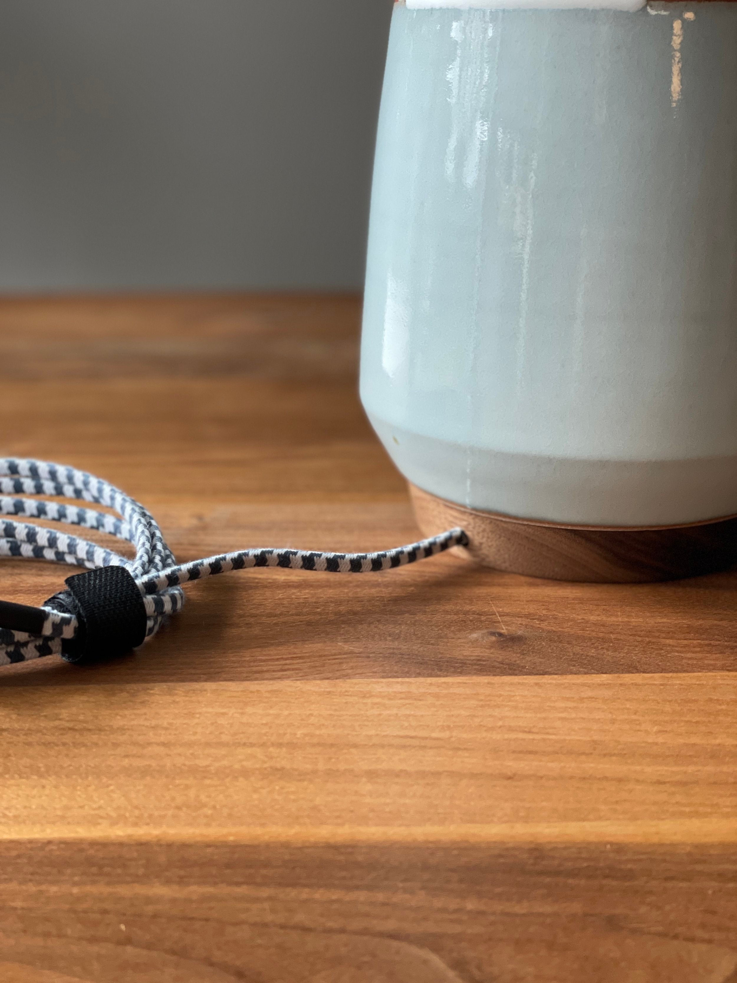 Our master woodworker hand-turns each neck and base of solid wood to perfectly match the form of it's ceramic body.