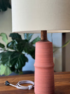 A stunning modern table lamp, crafted entirely by hand in our Colorado studio. Ideal for the nightstand or end table, this modern masterpiece brings that pop of color to your space.