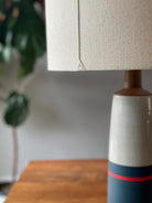 Long and slender, this stunning modern table lamp brings life to your space. It's sophisticated silhouette and detailed walnut neck make it a true statement piece.