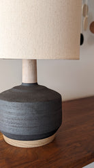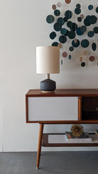 The perfect desk lamp for everyday use, this modern lamp highlights the natural beauty of the clay body and stunning woodwork.