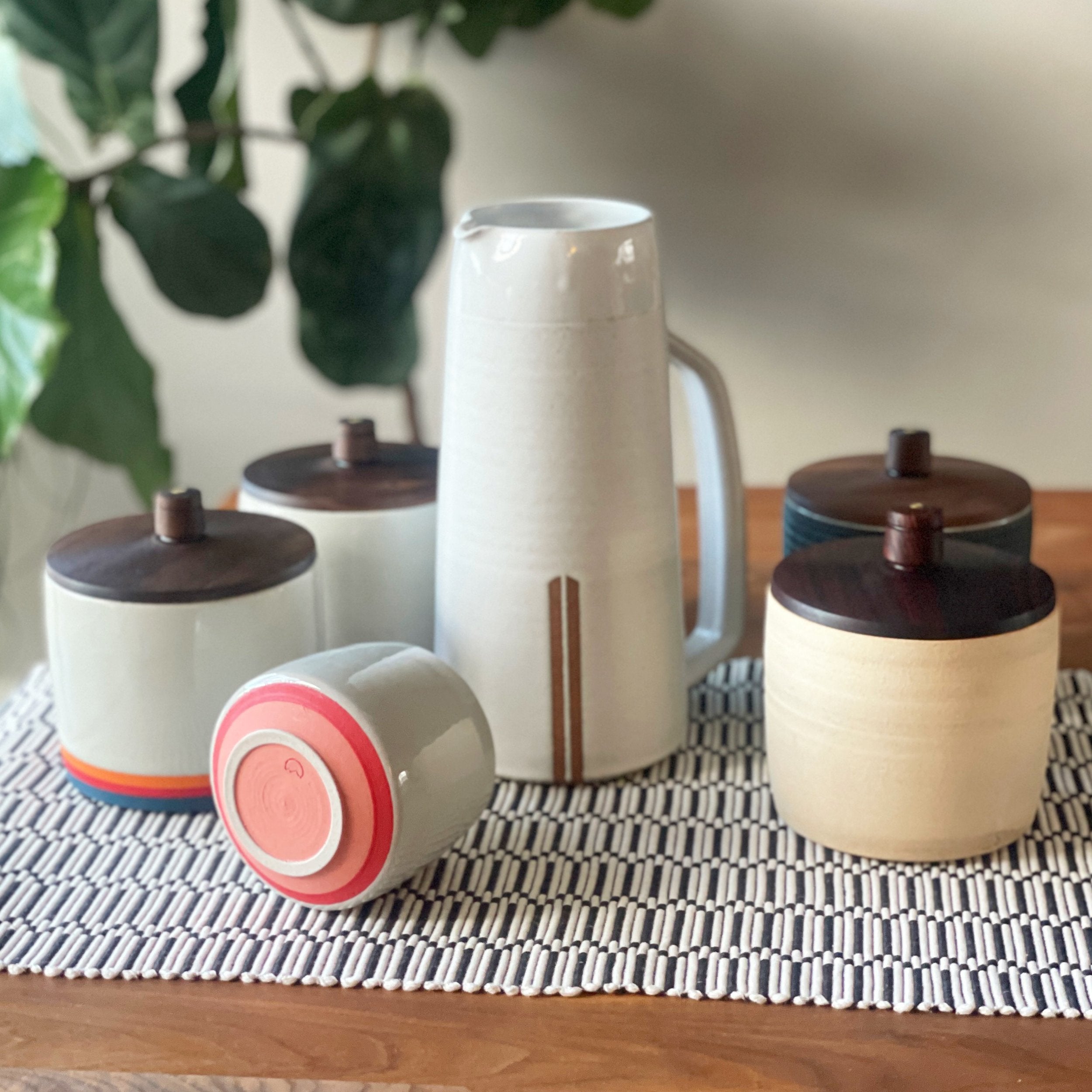 Out tall pitcher in a statement piece that can be left out, used for water and iced tea, or to hold your favorite flowers.