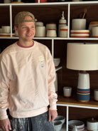 Our nicest sweatshirt in blush featuring our new lamp logo. The most wearable crewneck around - made with 80/20 blend from Champion. If you know, you know.