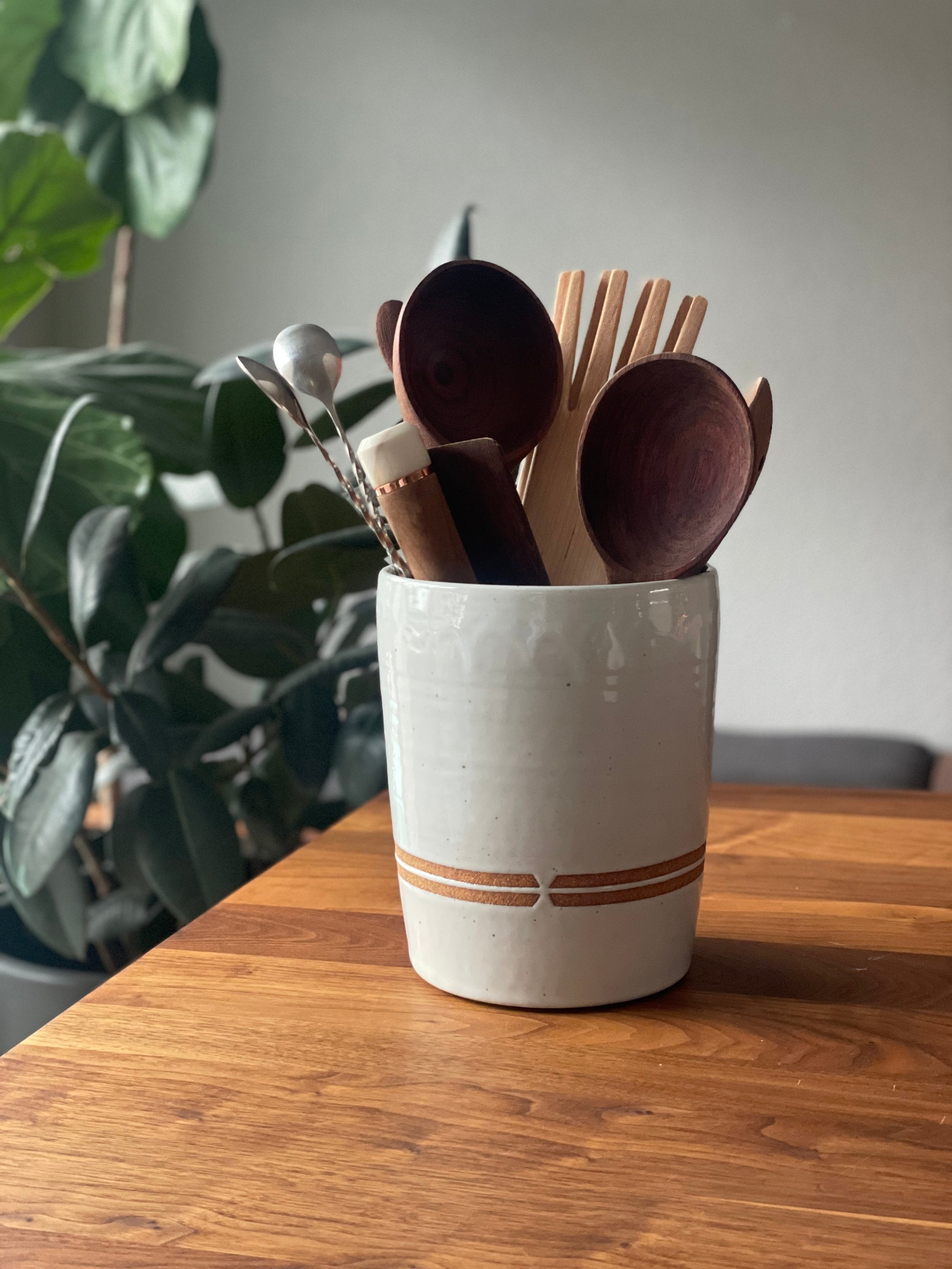 Stash all of your utensils in this beautiful vessel to elevate your kitchen. This can double as a vase, planter, or decorative object anywhere in the home.