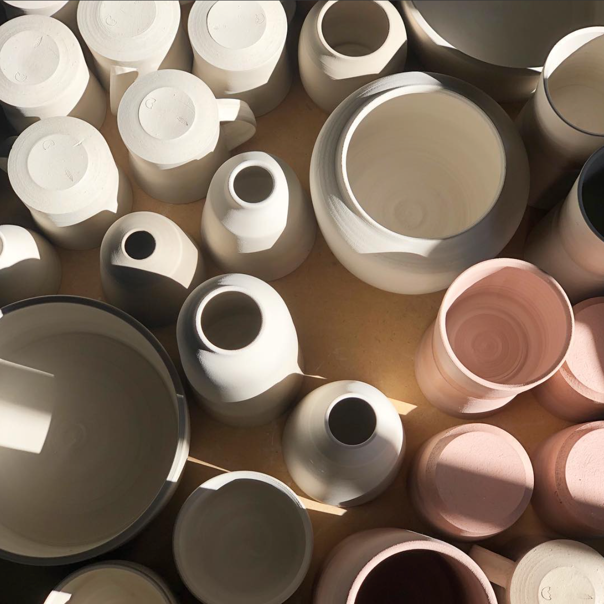 Dried pieces will make their way through the initial bisque firing - the first of two before they are complete.