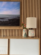 Introducing these two-of-a-kind abstract Edina lamps, sporting our classic shape and perfectly paired drum shade. This hand-painted pair is sold as a set and makes for a true Fenway Collectible.