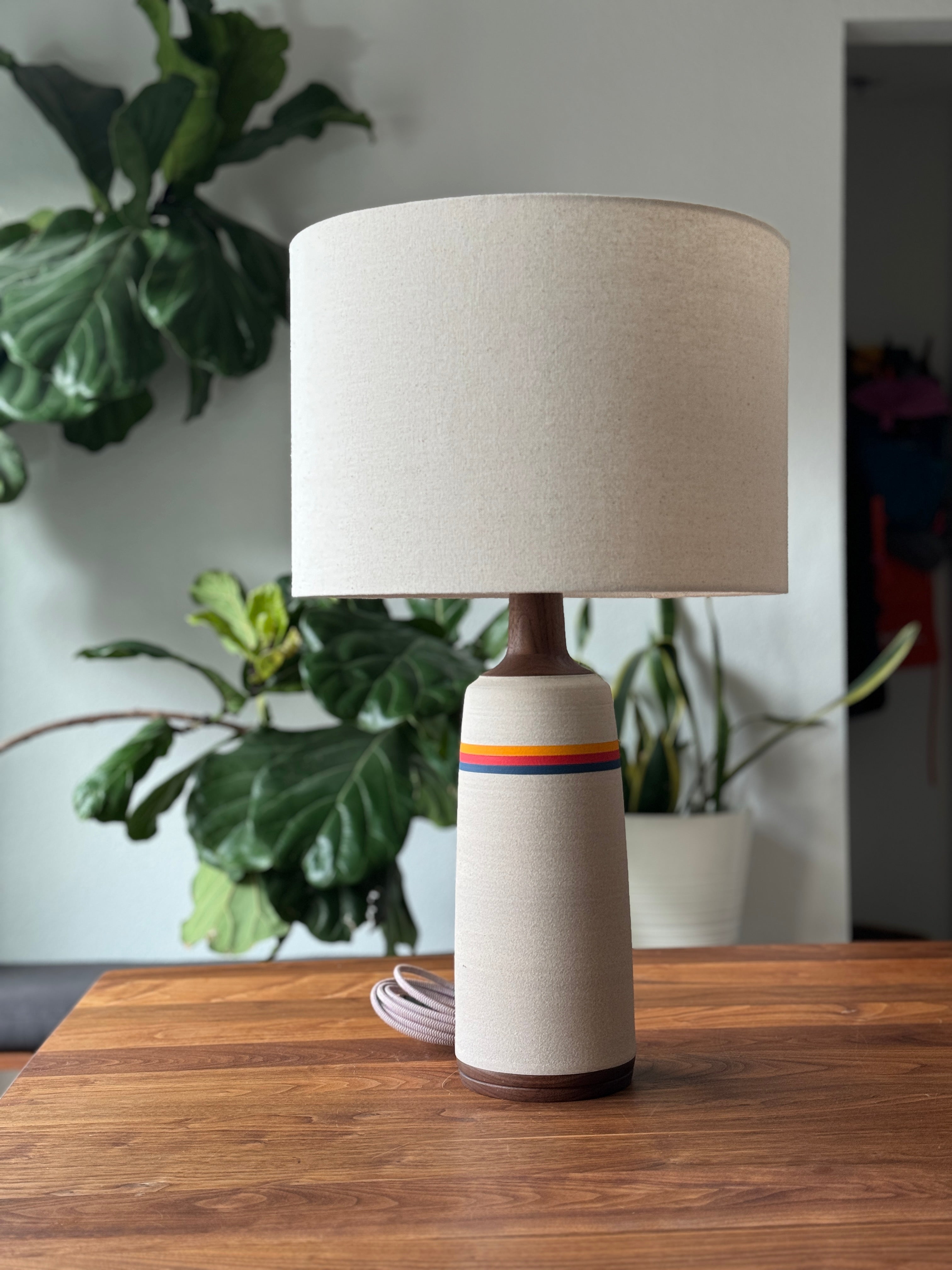 With perfect proportions and intricate walnut neck, this modern lamp is flexible and timeless in design. A quintessential Fenway shape, and offered in our most classic colorways.