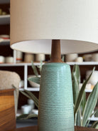 Our master woodworker hand-turns each neck and base of solid wood to perfectly match the form of it's ceramic body.