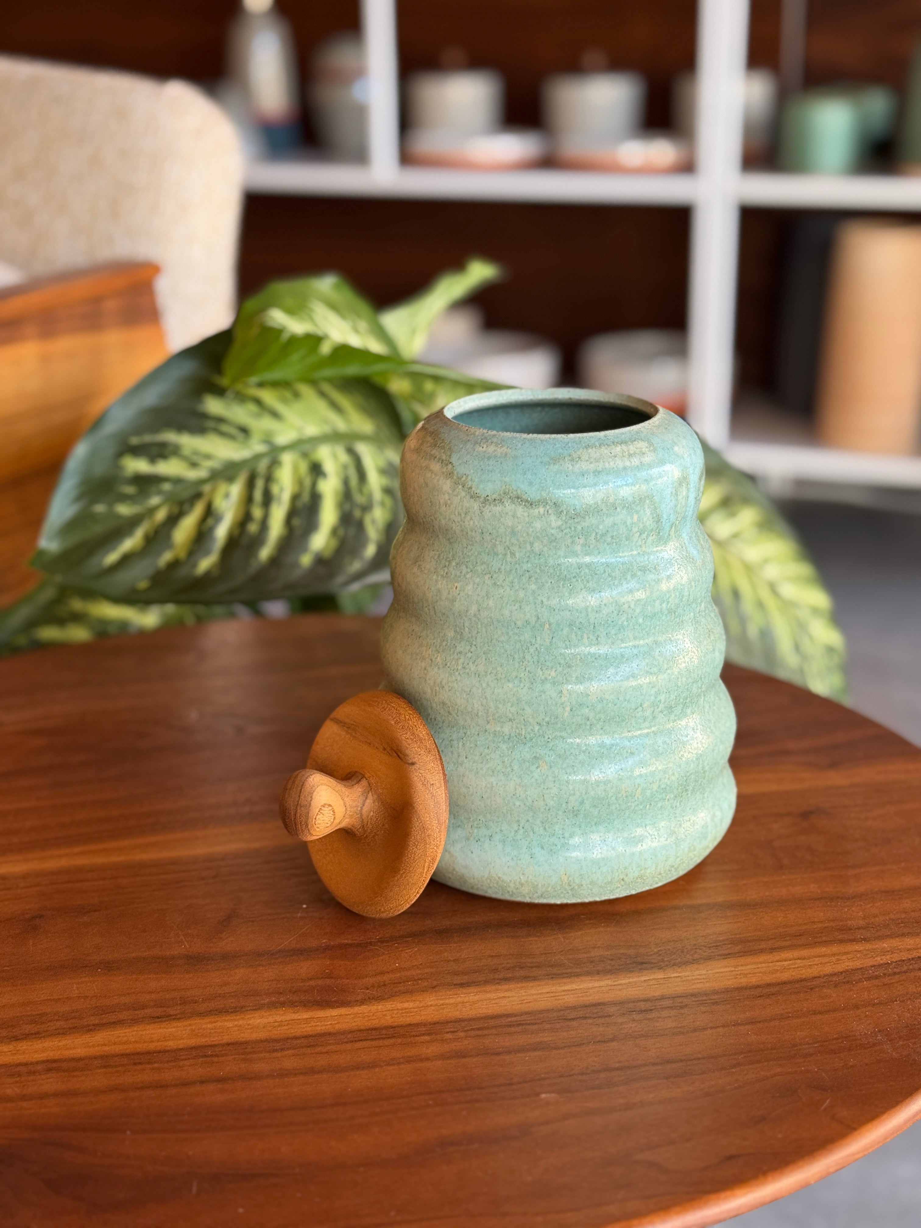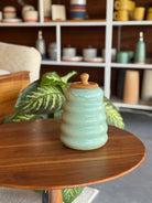 A fun twist on one of our favorite products, this wavy seafoam green canister adds a little whimsy to your countertop. This large canister is ideal for storing dry goods in the kitchen or stashing things away on open shelves or any other space in the home. One of one.