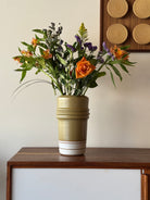 This limited collection of olive and white vases allowed us to experiment with various ridges, profiles, and waves. Each piece includes a new spin on our classic striping design to harken back to our roots. Limited to a collection of four vases.